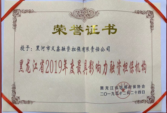- 2019/12/30 義鑫擔保公司榮獲“黑龍江省2019年度最具影響